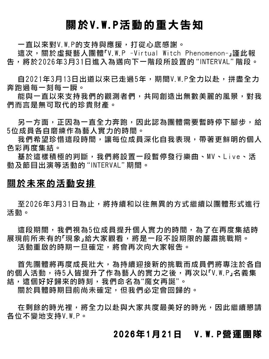 今天一小時後V.W.P直播。 【V.W.P 活動に関する大切なお知らせ】 1月21日(三)日本時間20:00 … 閱讀全文