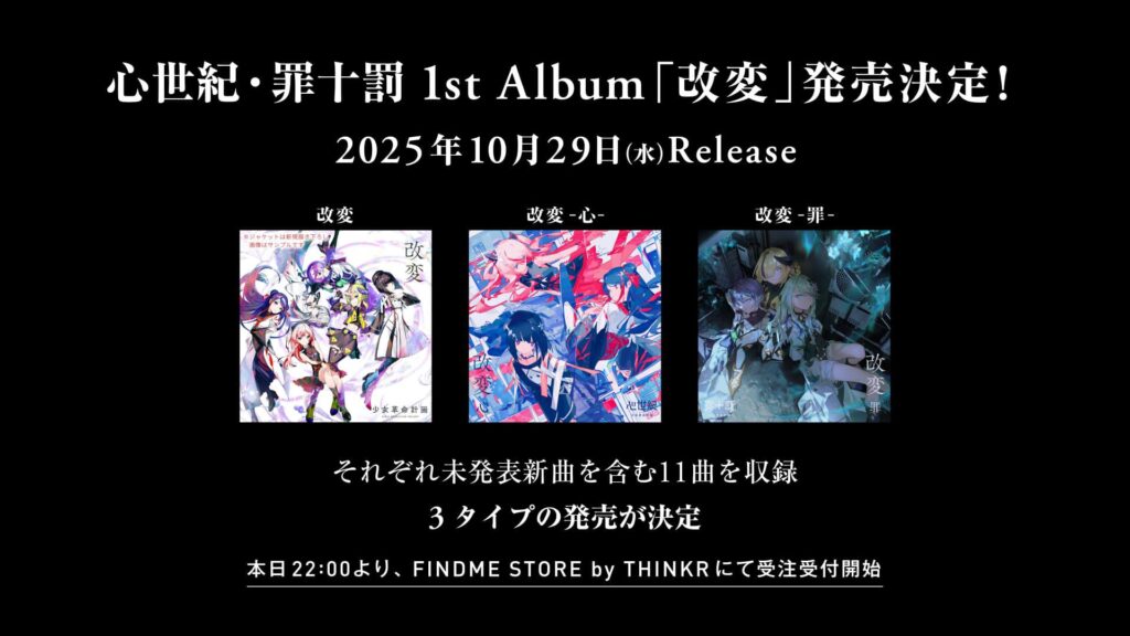 & 心世紀・罪十罰 1st Album「改変」已開放預購。Album是分別包含未發表的歌曲「改変」「改変 -心-」「改変 -罪-」的3種類型發售。