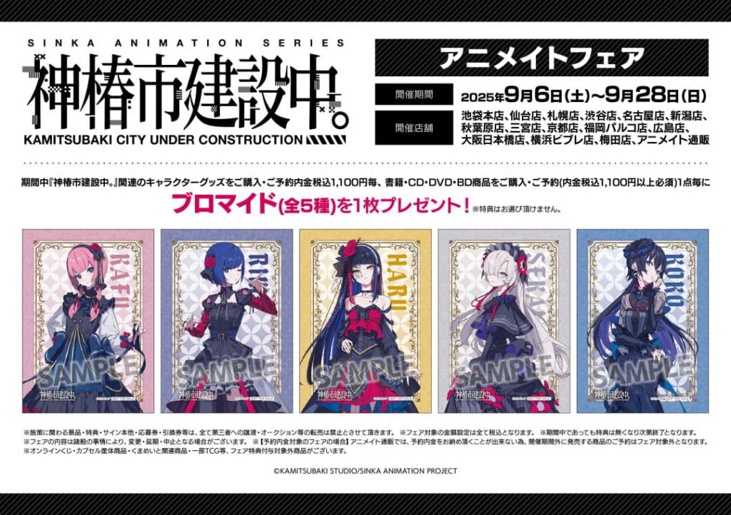 【資訊分享】#神椿市建設中 2025 年 7 月 25 日 作者: Neko no akuma 神椿市建設中。Animate Fair決定舉辦! 在Animate、Gammers、MOVIC購買指定商品到指定價錢都會有東西送。 詳細請看官網 原貼文
