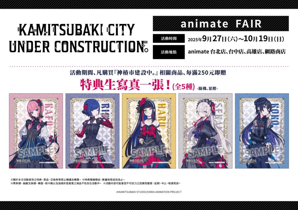 凡購買《神椿市建設中。》系列相關商品單筆消費每滿250元以上送一張。