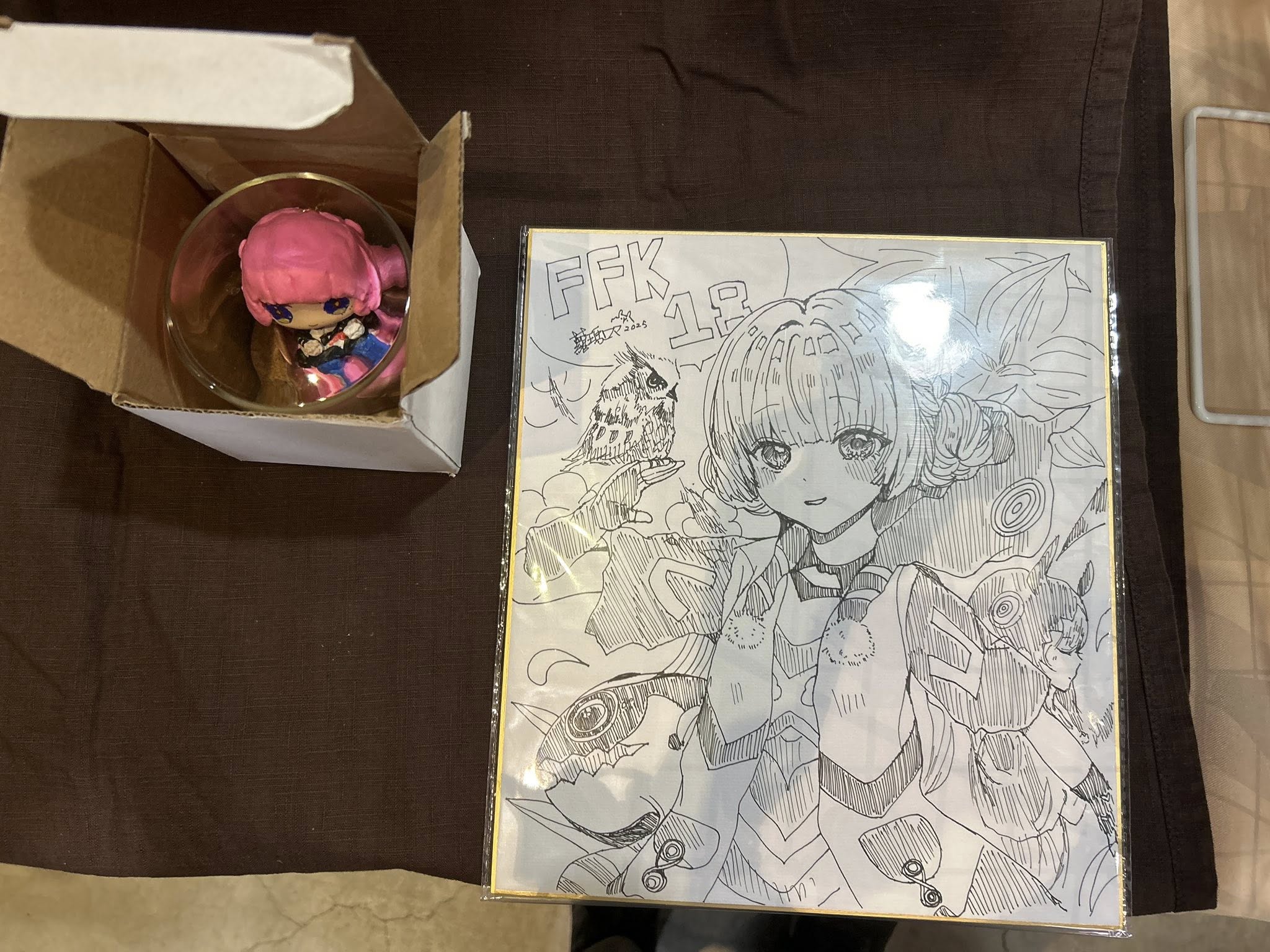 在此感謝 蘿瑪 ロマ 老師願意給予這個機會(也感謝她授予上方稱號),讓我感覺重回高一接待客人的那時候。也很開心,能在FFK看到完全是神椿的二創商品的神椿攤。更希望未來可以正式擔任小幫手(這次是臨時加入的)