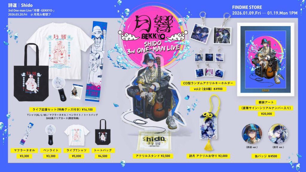【資訊分享】#詩道 2026 年 1 月 11 日 作者: Neko no akuma 詩道 3rd One-man Live 「月響 -GEKKYO-」 門票販售中!! ■ TIDETicket(先着・附特典) ■ 一般 Ticket(先着・一般) 2026年3月20日(五)東京・青山 月見ル君想フ 商品方面開放預購至1/19(一)日本時間13:00 #詩道_月響 原貼文 購票連結 購買連結