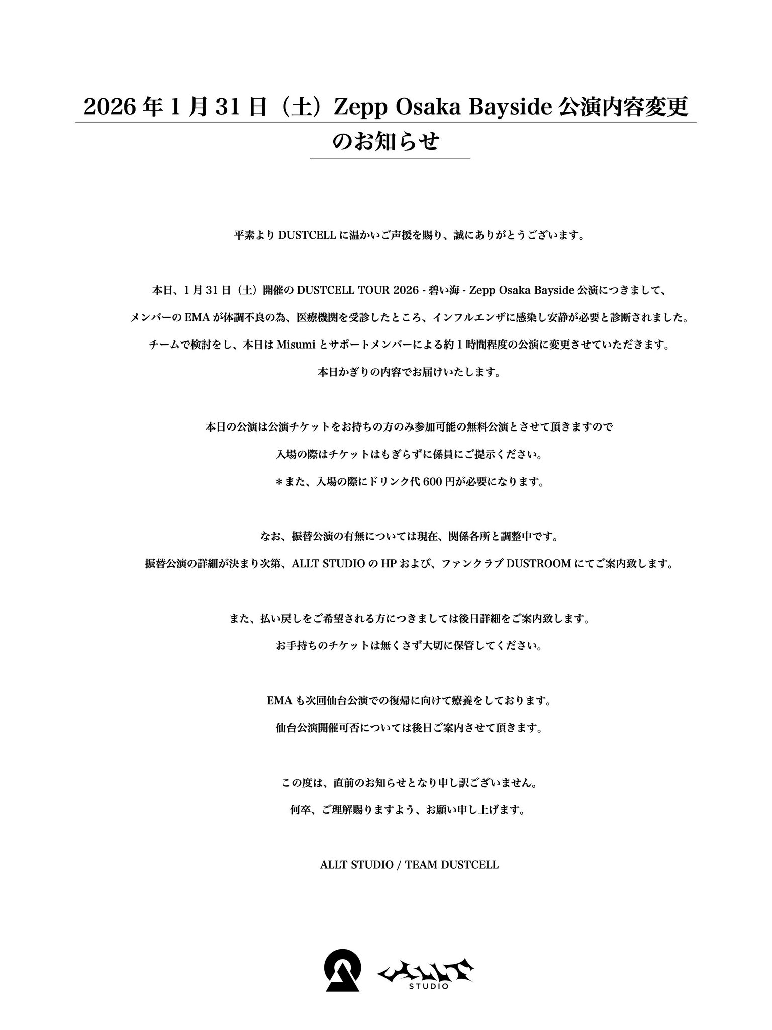 一直以來對DUSTCELL的熱烈支持,致以衷心感謝。 關於今天1月31日(星期六)舉行的DUSTCELL TO … 閱讀全文